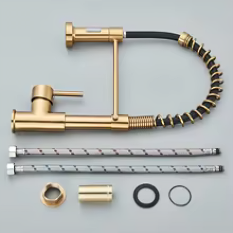 Chaque composant conçu pour la perfection. Notre kit de robinet à ressort hélicoïdal premium comprend le flexible rétractable signature avec design hélicoïdal de qualité commerciale, des tuyaux de raccordement en laiton massif, une quincaillerie de montage ajustée avec précision et des joints en caoutchouc premium. Le revêtement brossé doré garantit une beauté durable, tandis que le mécanisme à ressort flexible offre une maniabilité inégalée pour toutes vos tâches de cuisine. Tout ce dont vous avez besoin pour une installation professionnelle est inclus—aucune pièce cachée, aucune surprise.